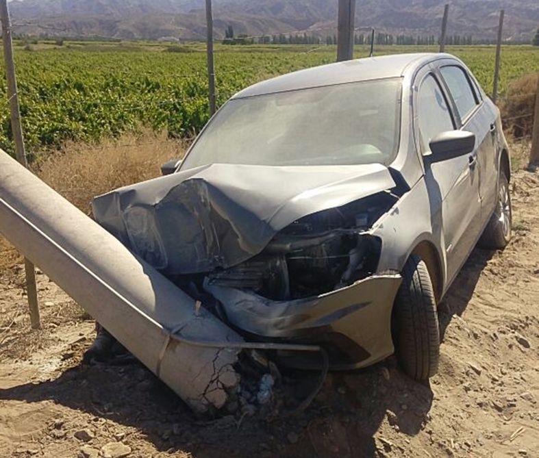 Un joven chocó con su auto y tiró abajo un poste del tendido eléctrico. Esto pasó ayer en la mañana en calle Colón, cerca de San Isidro, en el distrito La Puntilla, Caucete. La que sufrió el accidente fue Antonella Olivares (29), quien manejaba un Volkswagen Gol, informó la Policía. No se conocen las razones por las que perdió el control del vehículo. Ella iba sola y, según la Policía, tuvo golpes leves.