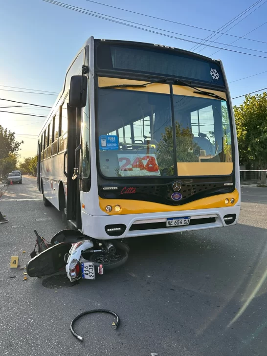 Los involucrados fueron un colectivo de la empresa Mayo (Mercedes Benz) de la Red Tulum que viajaba por calle Quiroga de este a oeste y que embiste a un moto Gilera 110cc en la intersección con calle Condarco.