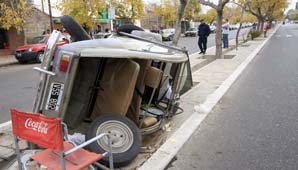 Producto de la fuerte colisión, el Citroen se fue contra el boulevard, dio un giro y terminó dado vuelta y con la trompa hacia el Este. Su conductora, Malva Guerra, de unos 70 años, fue la única herida del accidente. Fue trasladada al hospital Rawson, donde le diagnosticaron traumatismo de cráneo.