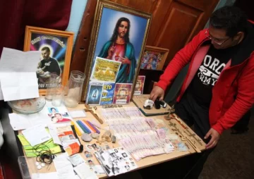 El operativo que concluyó con la captura del contraventor (un juez puede condenarlo ahora con multa o días de arresto) ocurrió alrededor de las 16 en una casa de República del Líbano al 525 Oeste, en Rawson. Allí, los pesquisas secuestraron unos $5.000, imágenes religiosas, velas y piedras de variados colores, cuadernos con anotaciones y numerosas fotografías de personas.