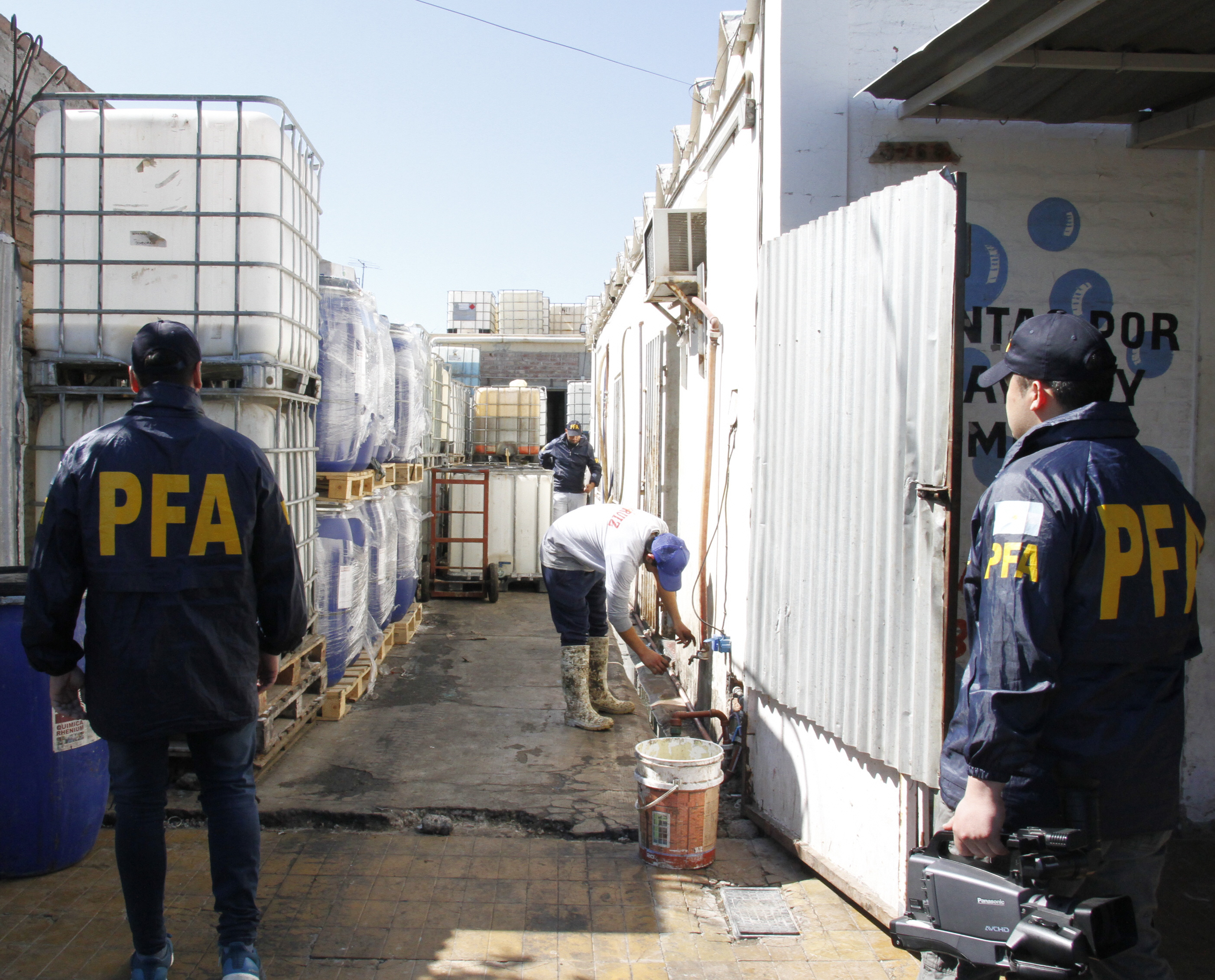 Una denuncia por los continuos derrames de líquidos químicos a la vía pública encendió la investigación. Y a las 11 de ayer un allanamiento de la Agencia Regional Cuyo de la Policía Federal en ese local de fabricación y venta de artículos de limpieza de Avenida España 3712 Sur, en Rawson, dejó al descubierto que el propietario no contaba con ciertas habilitaciones para tener determinados químicos y Maximiliano Ruiz (el local lleva su mismo nombre) quedó detenido. Los pesquisas secuestraron 5.025 kilos de soda cáustica en perlas, 195 kilos de carbonato de sodio y 260 litros de ácido clorhídrico, sustancia que comúnmente se utiliza para la fabricación de cocaína, pero que en este caso no era utilizada para ese fin, dijeron fuentes policiales. Según los voceros, Ruiz tampoco contaba con las medidas necesarias para evitar que esas sustancias dañen el medio ambiente.