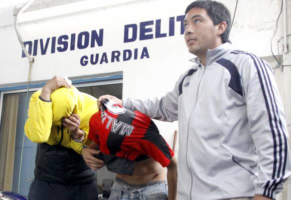 Los sospechosos son Nahuel Oscar Sosa (19) y Lucas Manuel Riveros Celiz (20). En la Policía aseguran que alrededor de las 21, sustrajeron la moto Zanella RX 150cc de un hombre de apellido Zapata en avenida Circunvalación 242 Norte, en el Bº Kennedy, Santa Lucía. Y que una hora después, atacaron un remís de la firma ‘Teler’ estacionado en la puerta de la empresa situada en Libertador 5.149 Oeste, Rivadavia. De ahí, huyeron al Oeste por la avenida con un móvil del Comando Radioeléctrico persiguiéndolos hasta el Bº 20 de Noviembre.