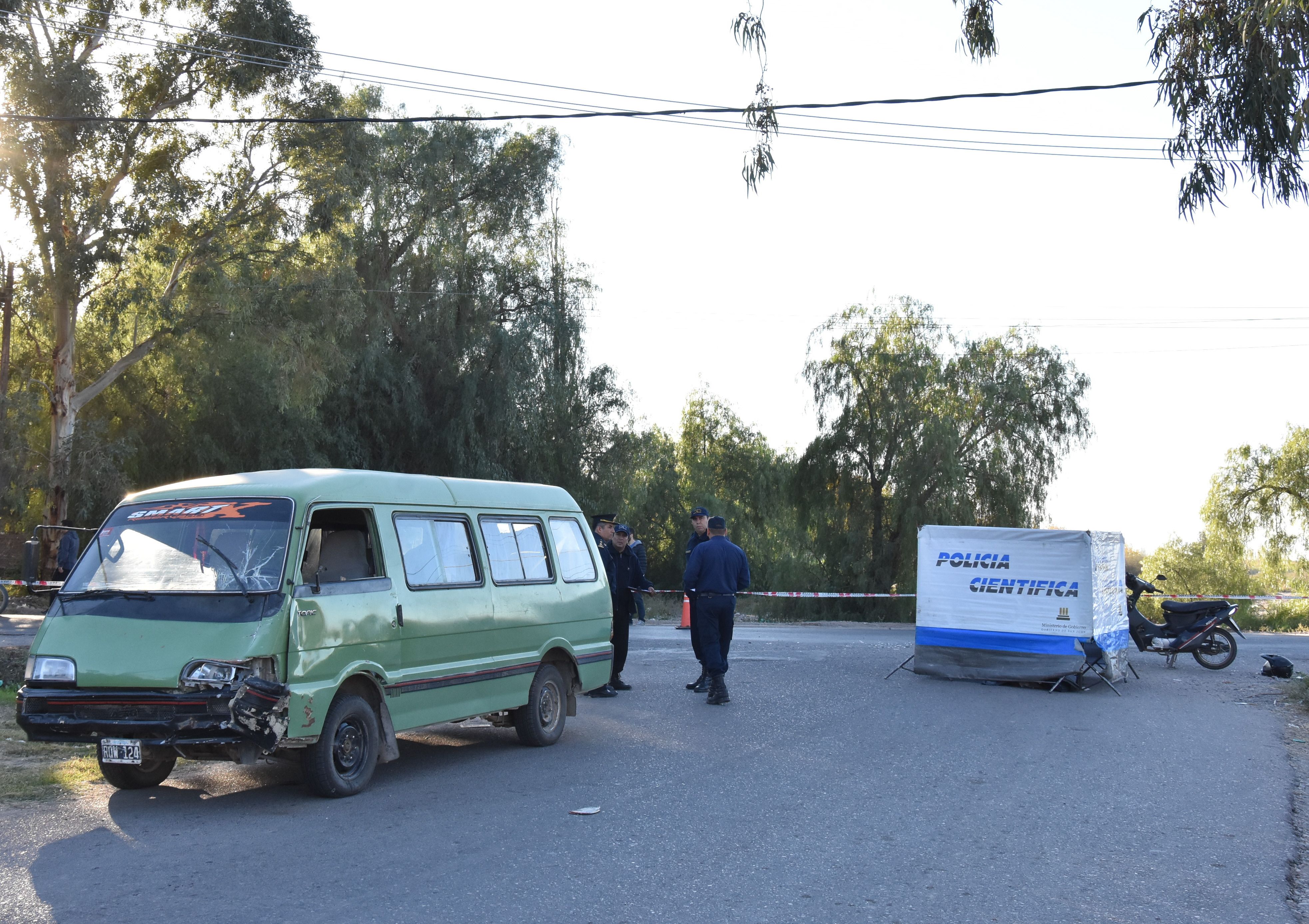Un albañil chimbero de 24 años murió en la mañana de ayer después de que un minibús lo embistiera cuando circulaba en moto por La Bebida, en Rivadavia. A Nicolás Castillo ni el casco lo pudo salvar y dejó de existir en el lugar, dijeron fuentes policiales.