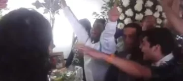 “Cata querido, el pueblo está contigo”, otro de los cánticos elegidos por el grupo vinculado a la facción de la Rioja Chica. Más tarde, con el ataúd envuelto en una bandera verdinegra, el cortejo pasó por club de Concepción.