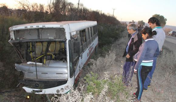 �Un chofer de la firma ‘El Triunfo’ y 8 pasajeros que ayer trasladaba a 25 de Mayo, terminaron en el hospital con lesiones varias (todos fuera de peligro). Ocurrió a las 15,30 cuando perdió el control por supuestas fallas mecánicas y se encajó en un zanjón de desagüe situado a su derecha en la ruta 270, entre Colón y Paso de los Andes, Caucete. Entre los heridos hubo cinco niños, incluidas una chica de 16 años y su beba de 1, que salieron quebradas, ambas en una pierna, informó la Policía.