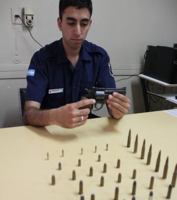Policías de la Seccional 25ta al mando del subcomisario Ariel Castro, apresaron a Francisco Javier Cuenca (28) en el barrio Soldado Argentino, Rivadavia, por tener un revólver calibre 38 y 34 cartuchos de variado calibre. Cuenca tiene un régimen de salidas de la cárcel, donde cumple pena por tentativa de homicidio, informó la Policía.