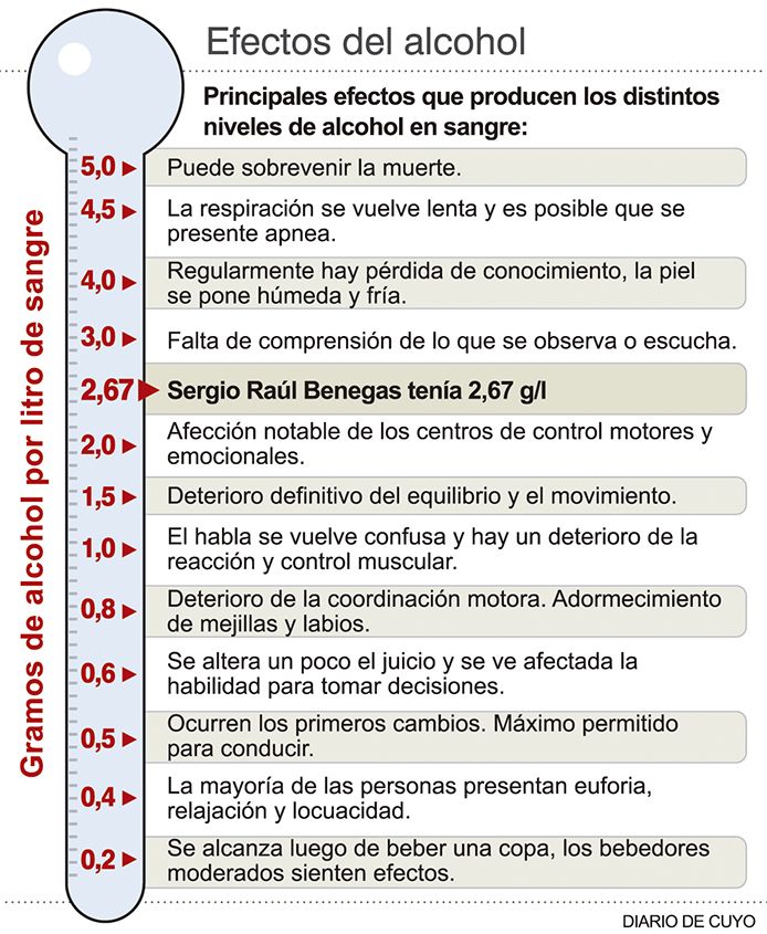 Más del quíntuple del máximo permitido: 2,67 gramos de alcohol por litro de sangre tenía el conductor de un auto que el sábado atropelló y mató a un hombre que caminaba por un costado de la calle con su moto pinchada, en Médano de Oro, Rawson. Fue el primer fallecido de dos que hubo durante el fin de semana (ver aparte).