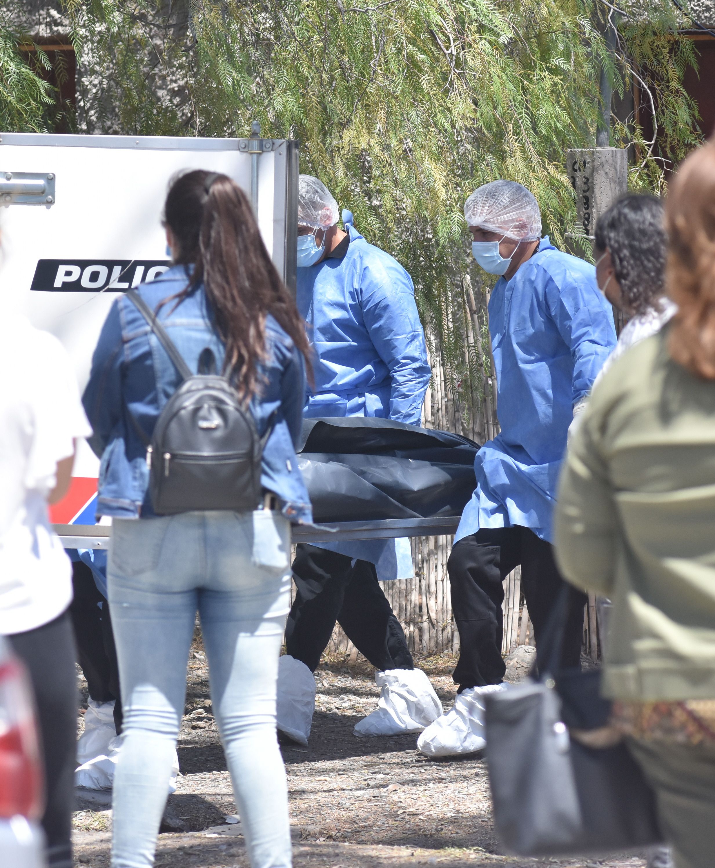 El momento en que sacan uno de los cadáveres para llevarlo a la morgue judicial.
