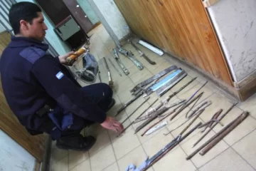 Efectivos del Servicio Penitenciario concluyeron ayer una requisa en los pabellones 1 y 5, que terminó con el secuestro de 35 puntas. Y en la policía esperan el análisis de sangre en dos de ellas, porque creen que una fue usada por el sospechoso Enzo Alvarez (25 años, preso por primera vez por tres asaltos) para ultimar Noé Moreno (37, varios años de encierro). Fue durante una pelea apenas terminó el partido de fútbol entre los equipos de los pabellones 1 y 5 el lunes minutos después de las 14. La autopsia reveló que Moreno recibió cuatro puntazos: uno en la cintura (costado izquierdo), dos en la cabeza (uno que perforó su cráneo) y la letal, de frente en la zona del hombro izquierdo, que dañó una arteria pulmonar, dijeron fuentes judiciales.