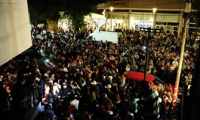 La movilización comenzó minutos después de las 21, en la puerta del local nocturno "Le Brique", situado en avenida 3, entre Paseo 102 y avenida Buenos Aires, en pleno centro de esa localidad balnearia.