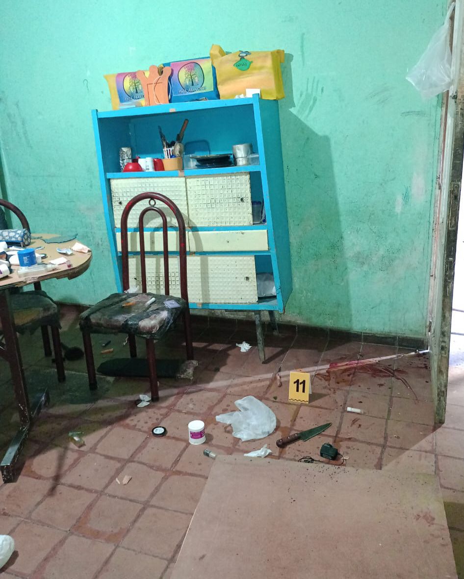 Cuando los policías derribaron la puerta para entrar, se toparon con la casa desordenada y salpicaduras de sangre por todos lados. También hallaron el arma homicida, la "tumbera", un billete de $200 con una línea de cocaína y otros envoltorios de esta droga en una cajita de crema para lustrar zapatos.