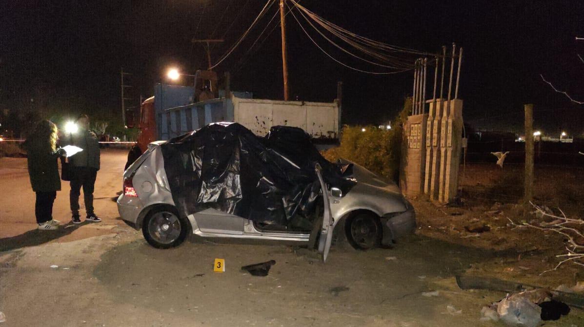 Al salir de allí, circularon a alta velocidad por calle Independencia hacia el Este y el conductor perdió el control del vehículo, dejando una huella de frenada y posterior derrape hacía la banquina derecha. En ese momento el vehículo chocó de lleno con el camión estacionado.