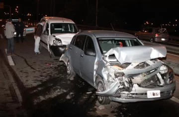 En un tramo de 400 metros sobre Av. Circunvalación, entre Conector Sur y calle Gral. Acha, Capital, se produjeron casi simultáneamente 4 choques que involucraron 11 vehículos, entre ellos un patrullero que fue a cortar el tránsito. Esto pasó ayer a las 19,30. Sólo hubo tres lesionados, dijo la Policía.
