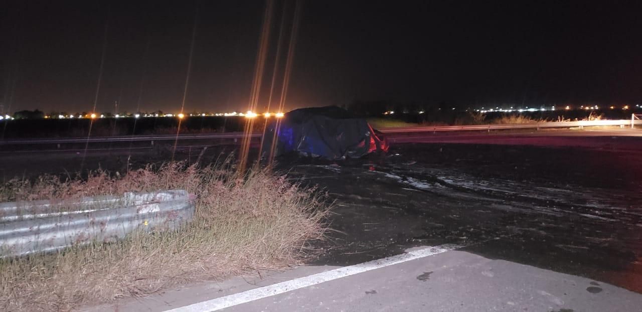 El automóvil se desplazaba de sur a norte y chocó contra un montículo de tierra que corta la ruta, la que se encuentra así desde hace tiempo por trabajos que realiza Vialidad Nacional.