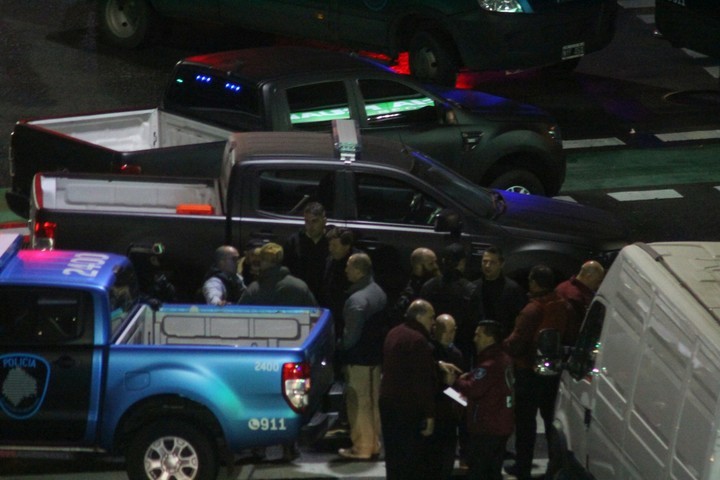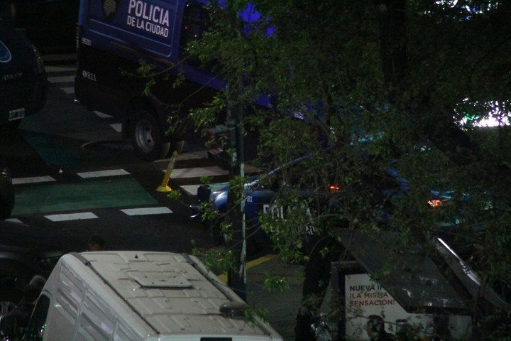 Los voceros policiales señalaron que se cortó el tránsito en ambas esquinas de las calle Puán con un autobomba y patrulleros, mientras un helicóptero de la fuerza sobrevolaba la manzana, donde también se observó la presencia de una ambulancia y policías en motos y camionetas.