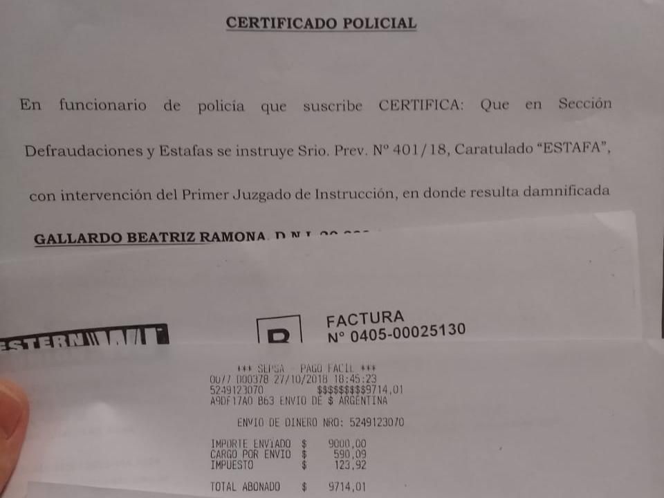 La mujer cuenta con los recibos de transferencia del dinero y la denuncia policial