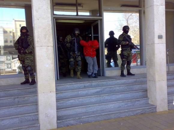 Roberto "El Manteca" Agüero (35) llegó ayer al juzgado federal para dar su versión sobre los 29,695 gramos de marihuana y los 2,937 gramos de cocaína, que le encontraron en tres bolsos con dos armas de guerra el pasado sábado a la madrugada en el barrio Santa Teresita, en Capital. Hoy continuará declarando. Su pareja, Vanesa Bueno (31) también declaró. Según su abogado, Pablo Flores, la joven llegó a ese lugar con Agüero sin saber nada de la droga. Por eso pidió que la liberaran.