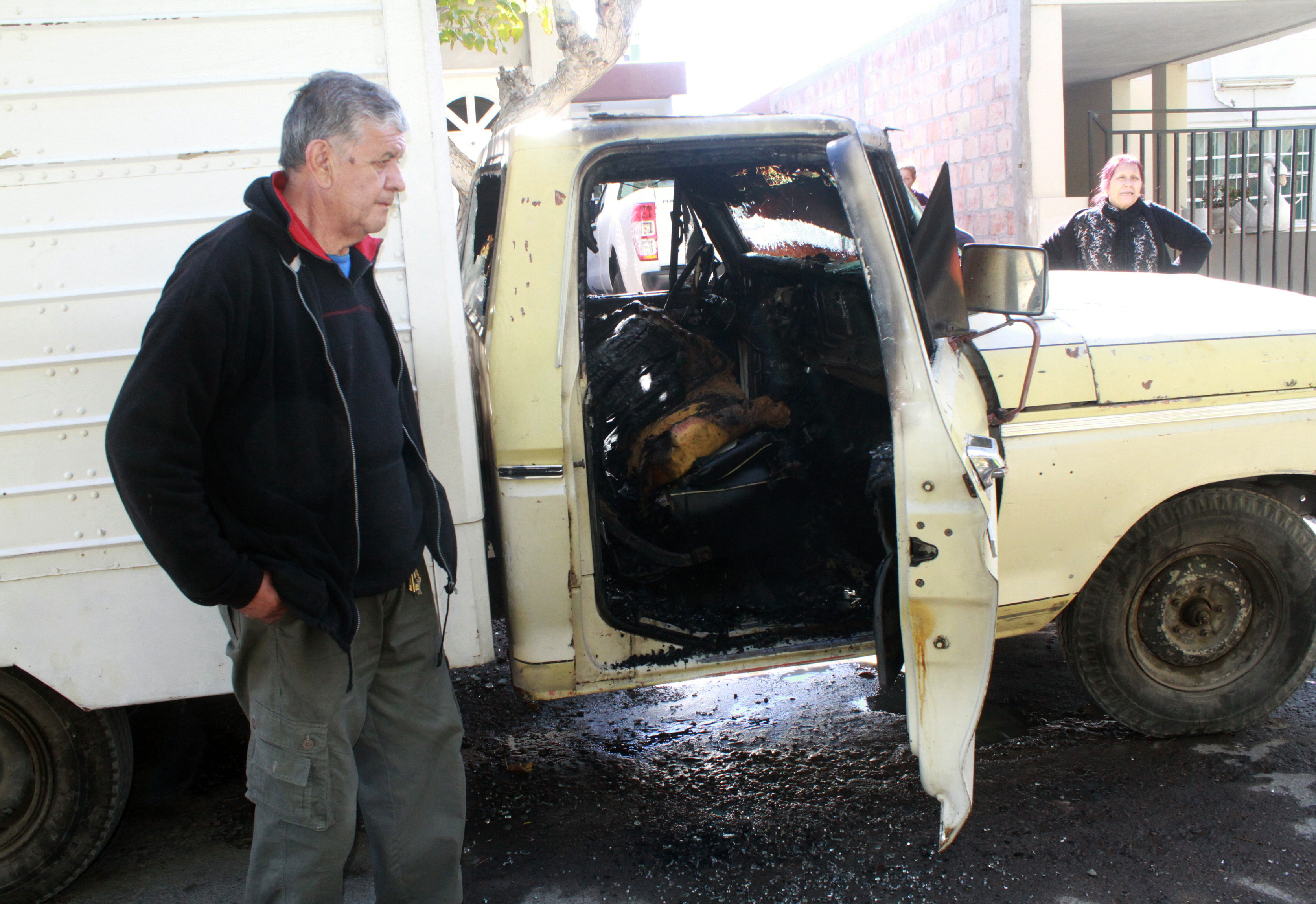 Ávila recordó que eran las 4.30 de ayer cuando un vecino le avisó que su camioneta Ford F100 con cámara frigorífica estaba ardiendo. El rodado estaba estacionado frente a la casa de Ávila, en calle O’Higgins 365 Oeste, en el barrio Hualilán I. Al salir, el propietario se topó con el habitáculo ardiendo. “Las llamas llegaban cerca de los cables. Nosotros no tenemos problemas con nadie, somos gente de laburo”, indicó Emma Flores, esposa de Ávila.