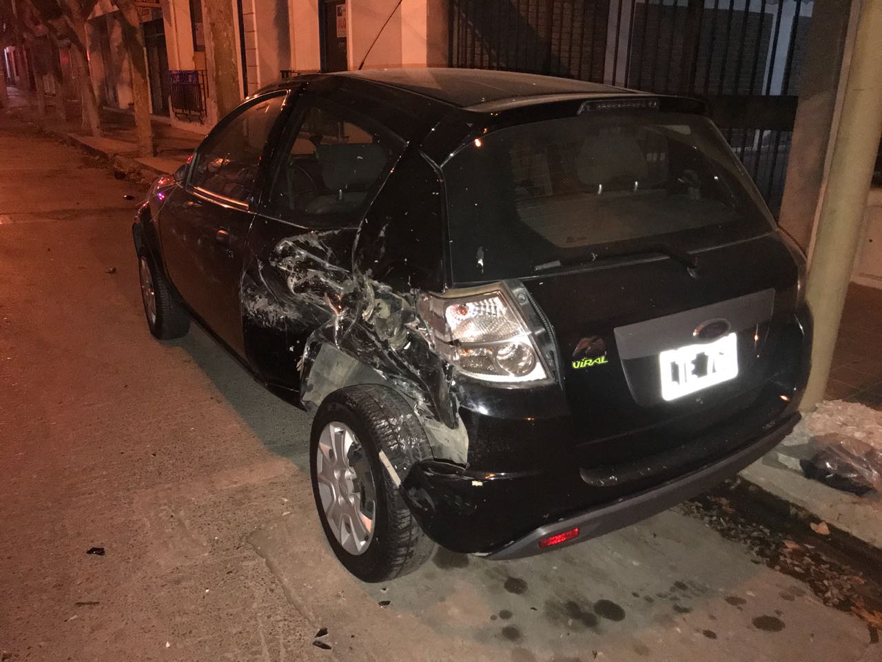 Un Ford Ka estaba estacionado y fue impacto por un vehículo. Según la policía, los testigos indican que se trataría de una camioneta Ford Ranger.