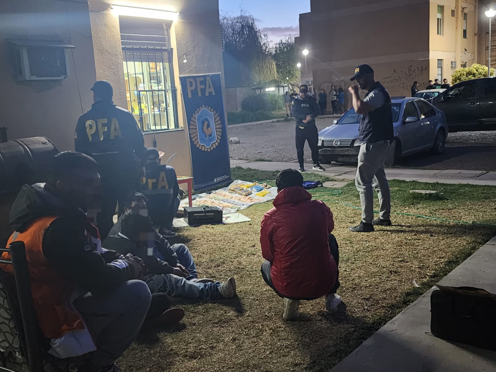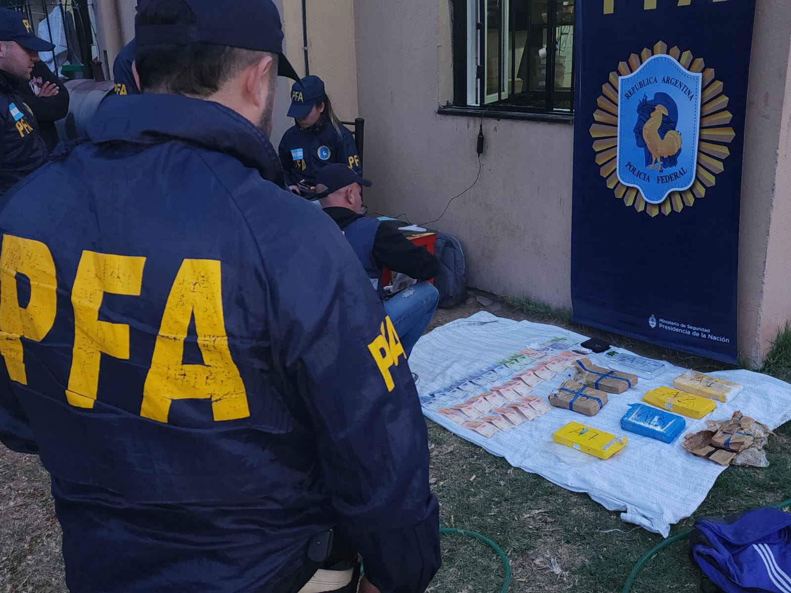 Además, se incautó casi un millón de pesos, dólares, balanzas, autos, picadoras, moto y gran cantidad de medios probatorios por lo que 4 personas del sexo masculinos, dos de ellos oriundos de la provincia de Mendoza, quedaron detenidos a disposición del Juez Federal Rago Gallo.