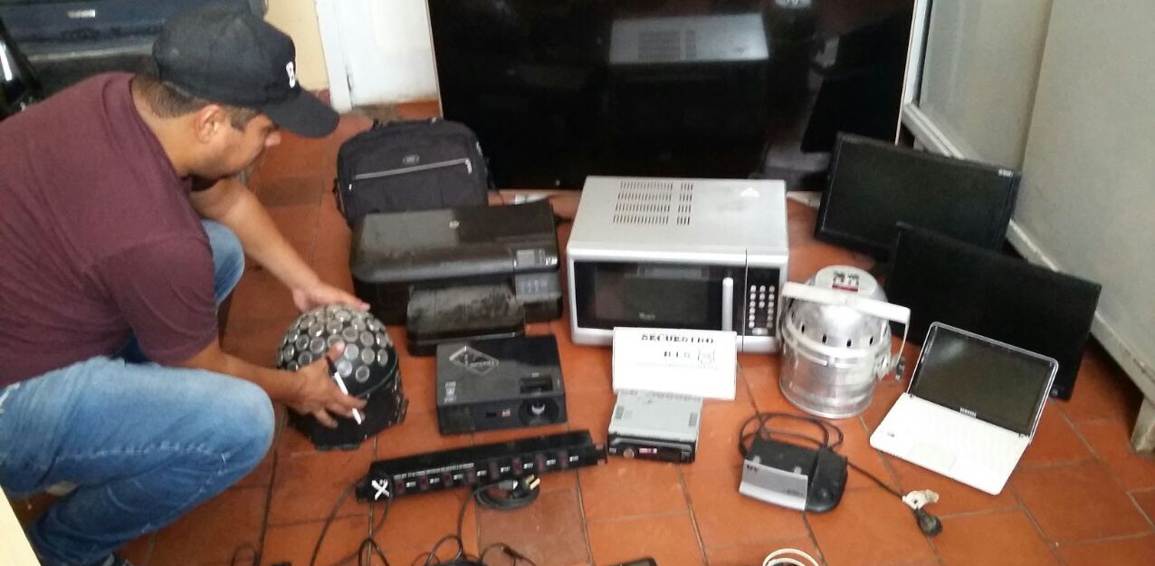 Dos sujetos identificados como Ramiro Ramírez alias ‘Gitano’ y el ‘Alicate’ Arias, fueron detenidos en Villa Las Rosas, Rawson, por policías de la Brigada Sur que dirigen el subcomisario González y el oficial Llanos. Tenían en su poder un televisor de 55 pulgadas, los electrodomésticos y otras cosas que habían sido robadas el lunes pasado en una casa del barrio Marcó, en Rawson, informó la Policía.