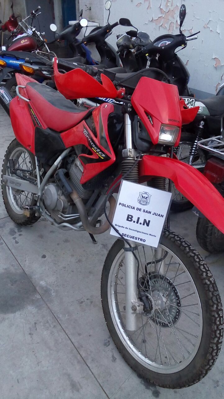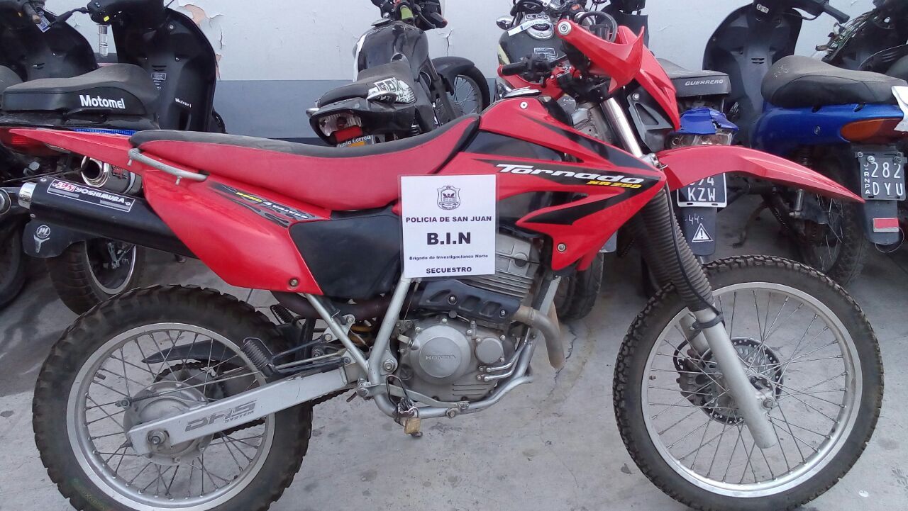 Según las fuentes, el procedimiento policial se realizó en diferentes zonas de Rivadavia tras recabar datos sobre la causa. Por este motivo, los uniformados del BIN secuestraron una moto marca Honda, modelo Tornado 250 cc.