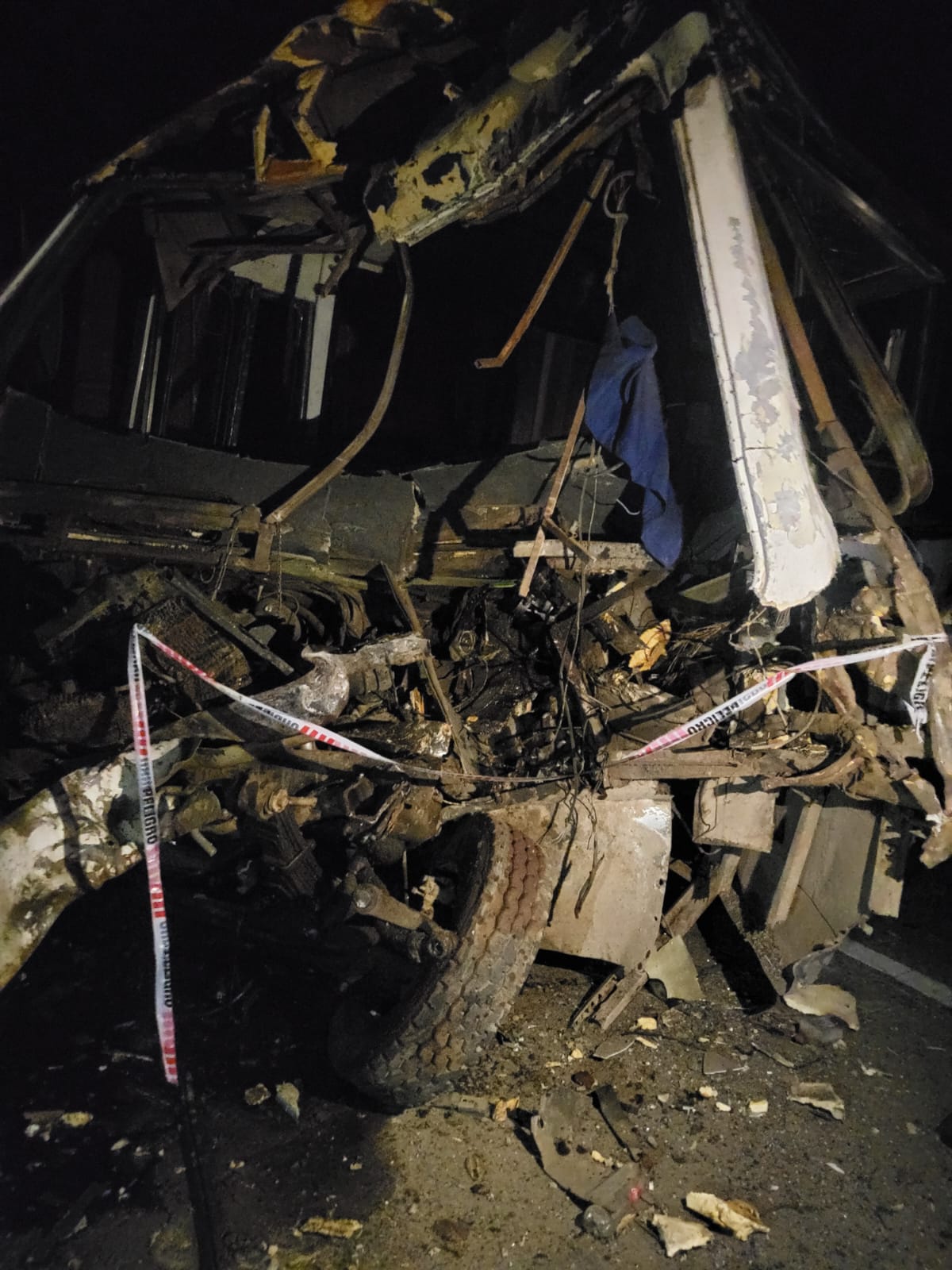 De la investigación se desprende que, aparentemente, un caballo se atravesó en la ruta y fue el chofer del colectivo quien realizó una maniobra terminando al medio de la calzada sin advertir que de frente venía el camión, a quien impacta de frente.