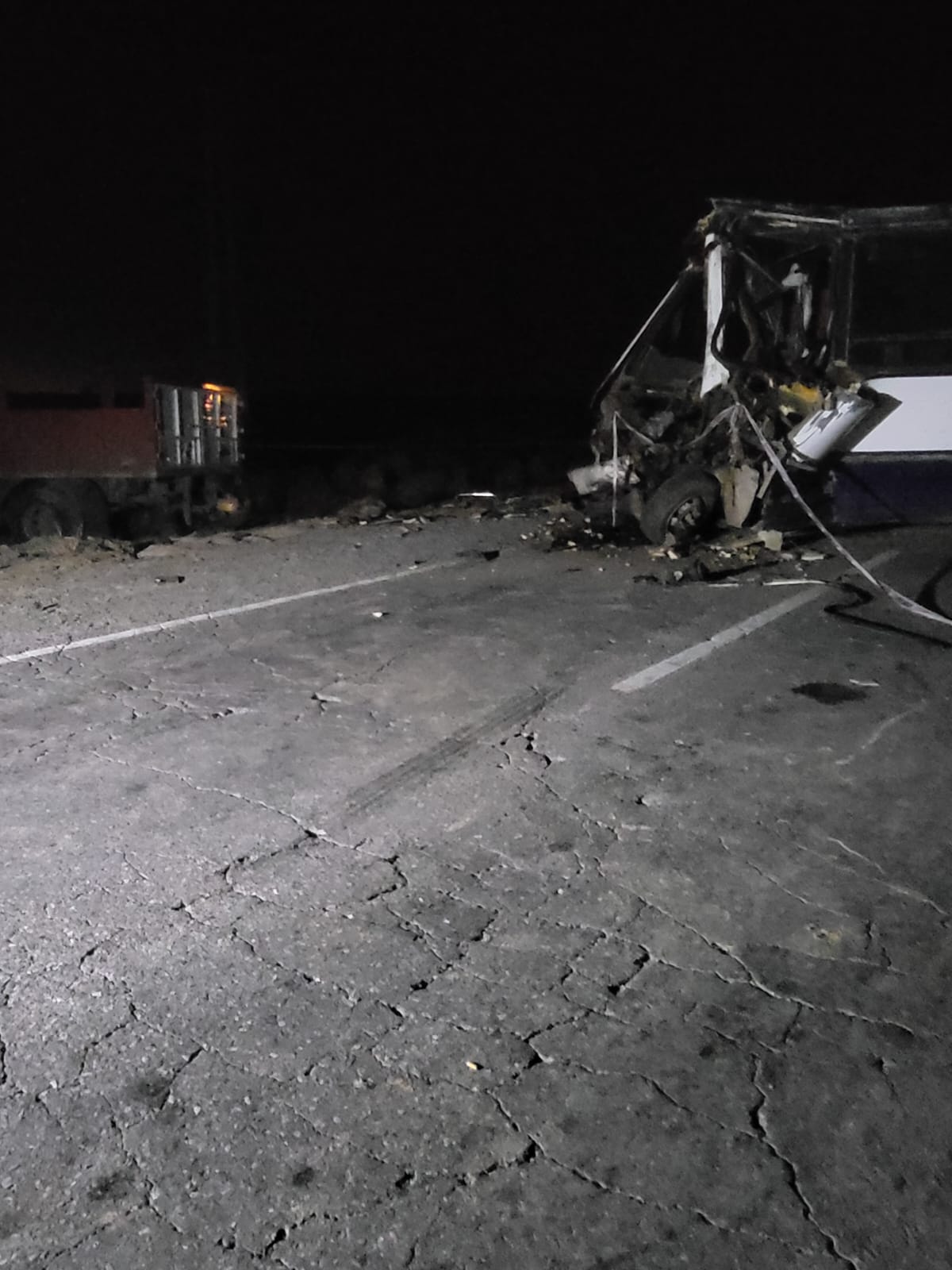 El siniestro vial ocurrió cerca de las 22 sobre Ruta 153, camino al distrito de Los Berros, cuando de Oeste a Este circulaba un colectivo Mercedes Benz conducido por Mauricio Facundo Fernández (44 años, oriundo de Media Agua), acompañado por su esposa, Silvana Gómez (56) y en sentido contrario lo hacía un camión Scania que al volante tenía a Raúl Alejandro Páez (47 años y con domicilio en Albardón), que también iba con su mujer, Vanesa Aballay (41).