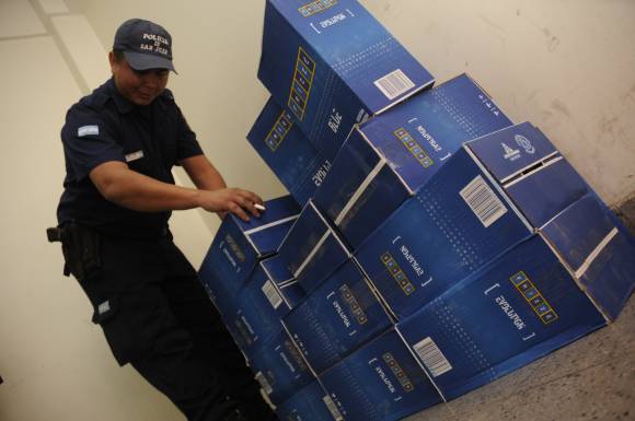 Los policías de la Seccional 5ta. detuvieron ayer a las 4 de la mañana a un chico de 17 años que junto a un cómplice -que fugó- robaba cajas de vinos espumantes de una Renault Trafic estacionada en la entrada al Bº Udap, en avenida Libertador, en Santa Lucía. En ese momento secuestraron 4 cajas. Más tarde hallaron otras 14 cajas de vino que los jóvenes había dejado en un zanjón cercano.