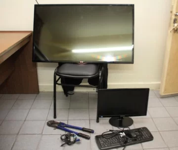 Los policías de Robos y Hurtos detuvieron a los dos presuntos ladrones que el lunes a la madrugada robaron aparatos en Cipriano Lomos de Av. Ignacio de la Roza, cerca de la Esquina Colorada, en Rivadavia. Los investigadores al mando del subcomisario Jorge Carrizo y el principal Julio Aballay realizaron allanamientos en Rawson y Capital, donde apresaron a Alberto Florez (22) y Jeremías Manzur (31), a quienes les secuestraron un Tv 42 pulgadas, un monitor de computadora, un teclado y hasta un alicate, informaron.