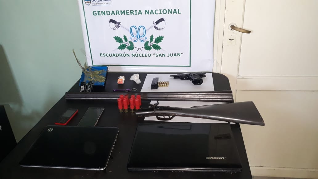 Hasta el momento fuentes de Gendarmería confirmaron el secuestro de cocaína, cogollos de marihuana, un revolver, una escopeta y varias municiones.