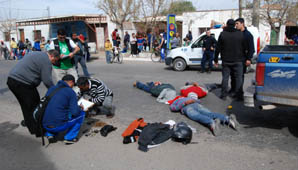 San Juan, 25 de agosto.- En horas del mediodía de hoy, personal policial de la Brigada Sur realizó un operativo en calle Lemos y Boulevard Sarmiento, logrando detener a tres personas fuertemente armadas.