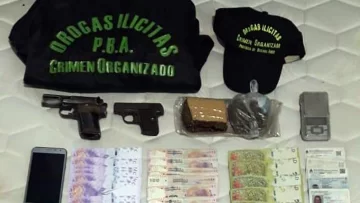 También los efectivos hallaron cinco vehículos, dos esposas, una máquina de contar billetes, dos balanzas de precisión, 11.255 dólares y 1.675.510 pesos en efectivo, 15 teléfonos celulares, una notebook y tres pendrives, entre otros elementos de interés para la causa.
