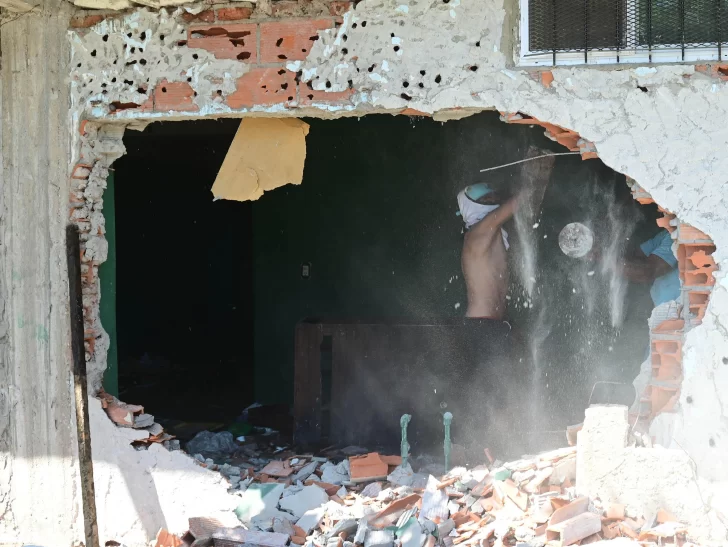 En cierto momento, la policía se llevó a todos los detenidos y la casa quedó a merced de los vecinos, que con mazas, martillazos y palazos lograron derribar paredes y saquear todo lo que quedaba en el interior de la vivienda, que -según decían- se trataba de un búnker desde donde se vendían drogas.