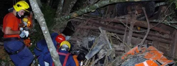 El vehículo, que transportaba a 35 señoras argentinas de regreso a la provincia de Misiones, tras una temporada en el balneario brasileño de Camboriú, se salió de la pista cerca de la ciudad de Riacho Queimado y cayó a un abismo de alrededor de 60 metros de altura.