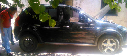 Las fuentes explicaron que el auto, un Renault Sandero Stepway, fue encontrado en la parte de atrás del domicilio de Rawson sin las calcomanías correspondientes y con las chapas de otro vehículo. Mientras que en el domicilio de barrio Aramburu se encontró documentación del auto.
