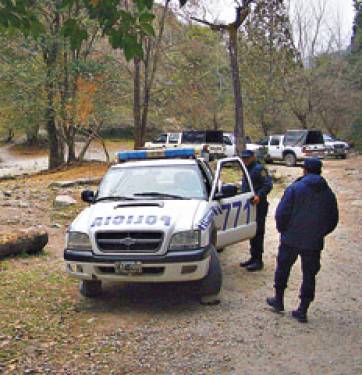 Una llovizna obligó esta mañana a postergar los rastrillajes para hallar el arma utilizada, un revólver o pistola de calibre 22, según el proyectil extraído del cuerpo de una de las víctimas.