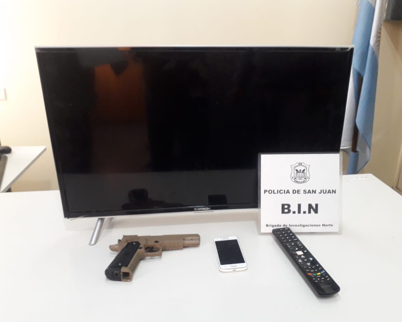 Fuentes policiales también indicaron que la Brigada Norte allanó una vivienda en el Barrio UPCN, Chimbas, ordenado por el 3º Juzgado de Instrucción. En el que además de aprehender al presunto ladrón, se secuestró parte del botin denunciado: un televisor Hitachi de 32”, una pistola Swiss de aire comprimido y un control. El damnificado también enumeró un televisor Samnsung de 50” y un reloj Festina.