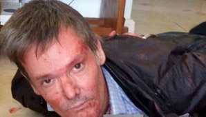 En una de las imágenes se puede ver al empresario con su cara manchada con sangre y la mirada perdida. En otra de las fotos se lo ve tirado al sospechoso, esposado y con las manos cubiertas de sangre