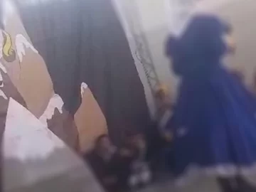 El momento quedó registrado en video por los padres de una alumna que recitaba sus líneas mientras la marcha de San Lorenzo sonaba de fondo.