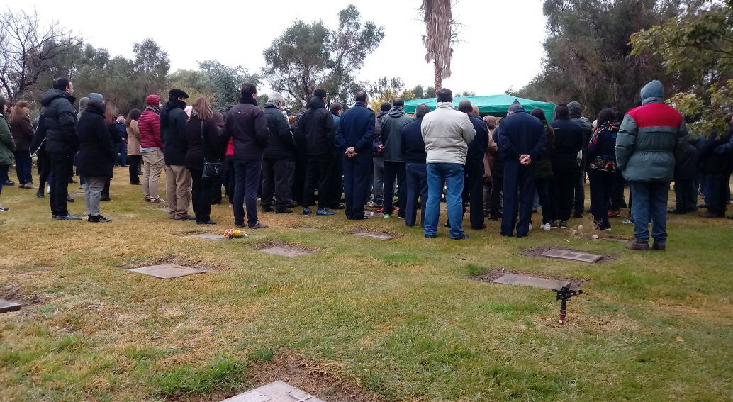 El sonido de las gotas de la lluvia sobre las hojas de los árboles en el cementerio Parque El Mirador, Rivadavia, pareció darle un sentido más trágico a la última despedida de la docente y sus dos hijos que murieron quemados en un incendio en su casa del barrio UDAP II, en Rivadavia, la madrugada del pasado lunes.