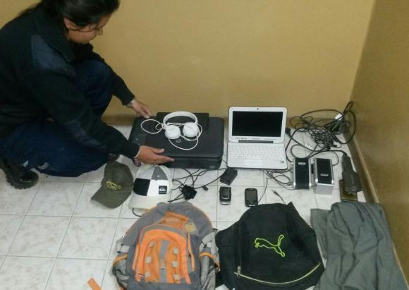 El improvisado robo tipo ‘escruche’ (en ausencia de moradores) en una casa del barrio Cipolletti, Chimbas, se transformó en una entradera con toma de rehenes a las 13 de ayer, cuando el hijo de los dueños de casa, de 12 años, llegó con un compañero de escuela. ‘¿Qué hacen ahí?’, preguntó a dos chicos que, en el acto, dejaron de forzar la puerta y ensayaron su mejor mentira: ‘Somos jardineros’. Pero enseguida los precoces ladrones (el ‘Ale’, de 13 años y el ‘Enano’, de 12) amenazaron de muerte a ambos niños y los encerraron en un dormitorio. Allí, el mayor de ellos se encargó de vigilarlos mientras su cómplice cargaba en dos mochilas una netbook, una impresora multifunción, una plancha para el cabello, dos parlantes de PC, dos celulares, dos gorras y una campera. Huyeron, pero instantes después policías de la subcomisaría Cipolletti al mando del comisario José Marín y el principal Julio Aballay los hallaron con el botín en un descampado cercano al barrio Arenales. Son inimputables y a última hora de anoche fueron entregados a sus padres, informó la Policía.