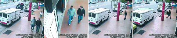En las imágenes tomadas el miércoles a las 15:30 en Ignacio de la Roza al 1450 Oeste, casi Ameghino, puede verse a los dos hombres cruzarse con la víctima en la vereda (foto 1). La mujer -de blanco- salió del consorcio y subió al auto de una amiga. Los delincuentes la miraron, pasaron y volvieron (foto 2). Llamaron a los cuatro departamentos a través del portero eléctrico para saber en cuál de ellos vivía la mujer y si había alguien más. Para asegurarse, caminaron por la vereda y regresaron para abrir la puerta del consorcio (foto 3), aparentemente con una ganzúa. De esa forma ingresaron y llegaron hasta el departamento de la mujer, donde rompieron la cerradura, según datos policiales.