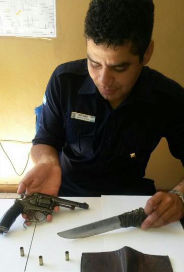 �Dos chicos de 15 años (por ley, inimputables) fueron apresados por policías de la subcomisaría Cipolletti que dirigen el comisario José Marín y el principal Julio Aballay, como partícipes del asalto a punta de arma (con revólver y cuchillo, foto) que sufrió un vecino de apellido Moya en el barrio Parque Industrial, Chimbas, el pasado 10 de septiembre. Hay dos prófugos.