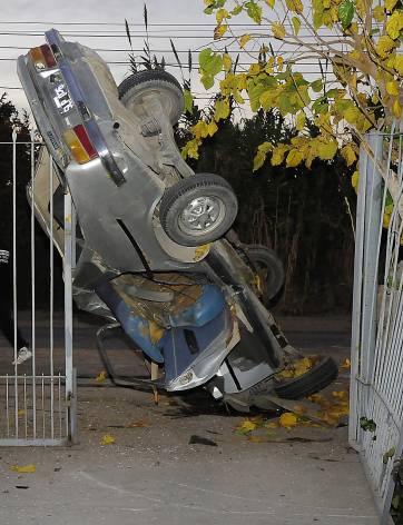 La tragedia pudo ser el desenlace lógico, pero ayer dos hombres escaparon al peor de los destinos luego de dos choques impresionantes. En la madrugada, en Pocito, uno de los conductores se estrelló contra un árbol y sobrevivió, aunque terminó con quebraduras en ambas piernas (ver recuadro). Por la tarde, en Chimbas, otro se desvió hacia su derecha, se metió a una acequia profunda, chocó una compuerta, un puente y una pared medianera antes de terminar despedido y con el auto de punta sostenido por las rejas de la vivienda.