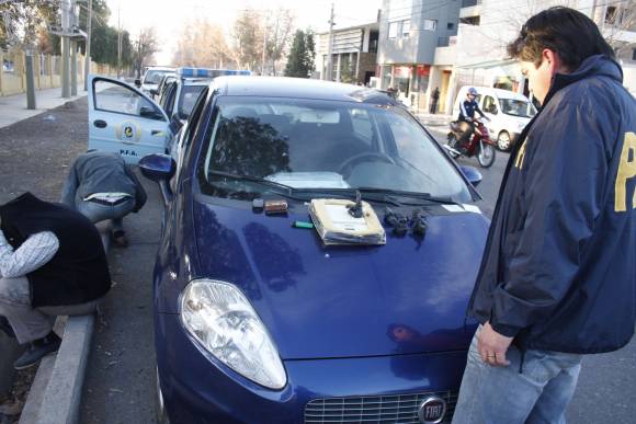 Los efectivos de la delegación local de la Policía Federal detuvieron ayer a las 17 a dos sujetos con 130 gramos de marihuana sobre calle España, casi Pedro Echagüe, Capital, informaron en esa Fuerza. Los sospechosos, de 35 y 45 años, viajaban en un auto Fiat Punto cuando lo interceptó una patrulla de civil. Llevaban 5 envoltorios con droga.