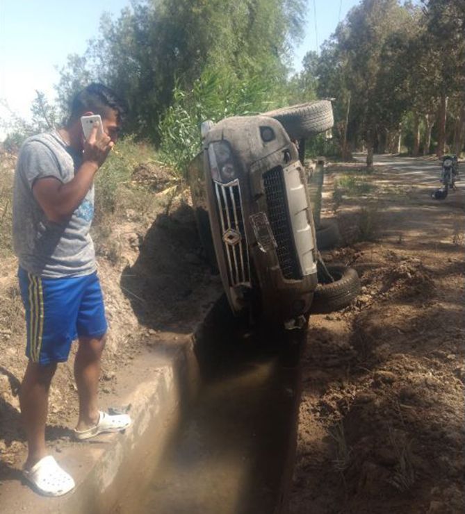 Dos heridos leves por un vuelco en Pocito