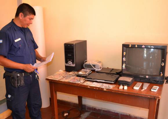 Dos hermanos de apellido Videla, de 23 y 20 años, fueron detenidos en Cochagual, Sarmiento, por policías de la Comisaría 8va de Sarmiento al mando del subcomisario Natalio Ríos, justo cuando intentaban tomar un micro para huir con el televisor, el DVD, los discos, los elementos de computación y otras cosas (foto) que les habían sustraído a dos vecinos en Cochagual Sur, Miguel Castro y Mario Estela, dijeron fuentes policiales.