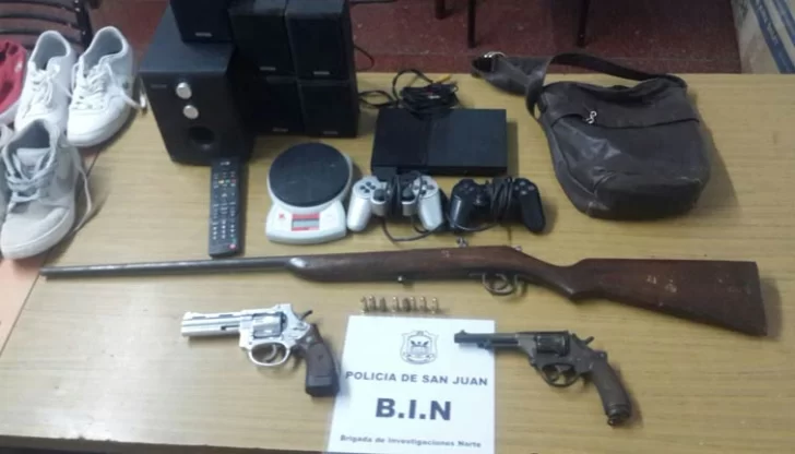 San Juan.- Dos hermanos de apellido Cortez y tres de sus cómplices terminaron presos después que los efectivos de la Brigada de Investigaciones Norte les encontraran en su poder elementos robados días atrás de una casa en Rivadavia. Además, hallaron varias armas.