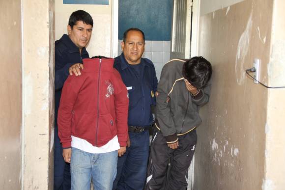 Un joven de 23 años, de apellido Herrera, y un chico de 16 años (foto) fueron apresados el sábado a las 20 por el oficial ayudante Ramón Olivera y el agente Pedro Amarfil (comisaría 28va.) cuando robaban $107, un celular y una tarjeta de memoria de una casa del Bº Nuevo del Bono, Rawson, según la policía.
